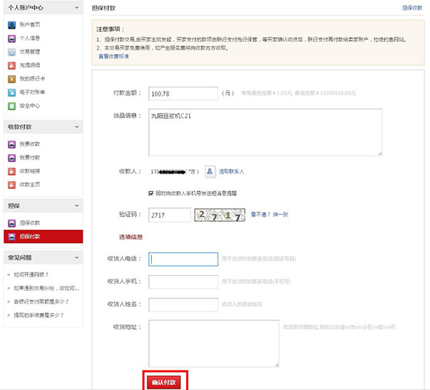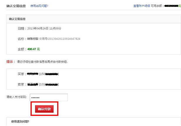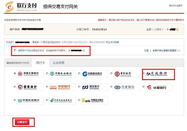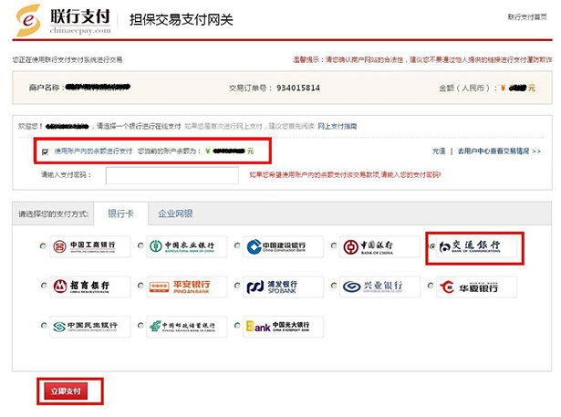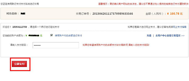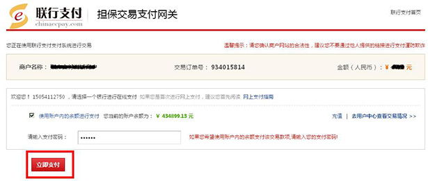 9、账户余额足够本机交易,可选择账户支付方式,输入支付密码。