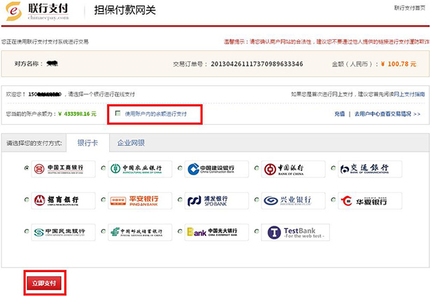 10、选择账户余额支付,输入支付密码,同时选择银行网银。