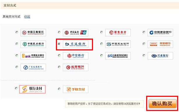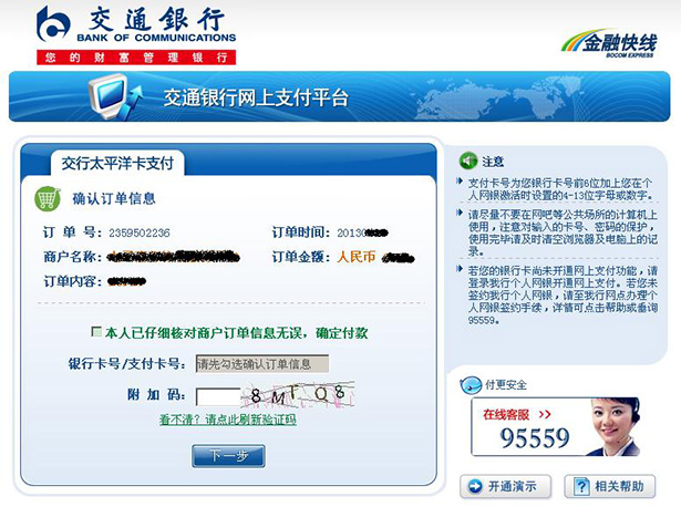 6.可以选择三种方式:账户支付、银行卡支付、或两种方式一起使用。银行卡方式为7-8 步。账户支付方式为第9步,两种方式一起使用的情况为当账户余额不足以支付本订单,可以用银行卡支付剩余的款项,步骤为第10步。支付成功后两种方式都跳转到第11步。
